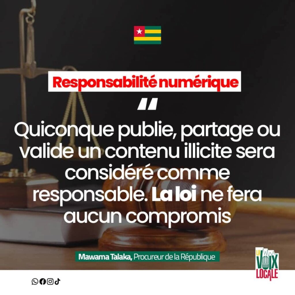 Le code pénal du Togo stipule que les insultes, la diffamation, la diffusion de fausses informations, les mensonges, la publication d’images obscènes, ainsi que même un simple commentaire, sont passibles de sanctions.