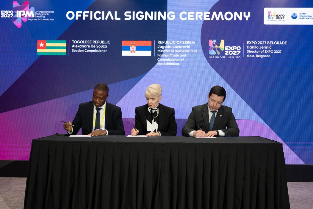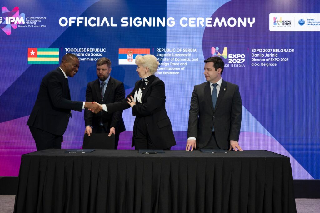 Lors de la réunion des participants internationaux (IPM 2026), qui se déroule à Belgrade du 10 au 12 mars 2026, le Togo a officiellement conclu un contrat de participation pour l’Expo 2027.