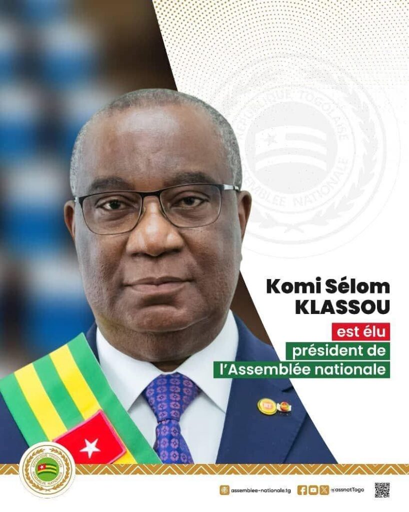 Membre du parti Union pour la république (Unir), Komi Sélom Klassou devient le quinzième président de la Représentation nationale dans l’histoire du Togo, succédant à Sevon-Tépé Kodjo Adédzé. Son élection s’est déroulée lors lors de la deuxième séance plénière de la 2e session ordinaire de l’année tenue à l’hémicycle ce mardi 28 octobre 2025.